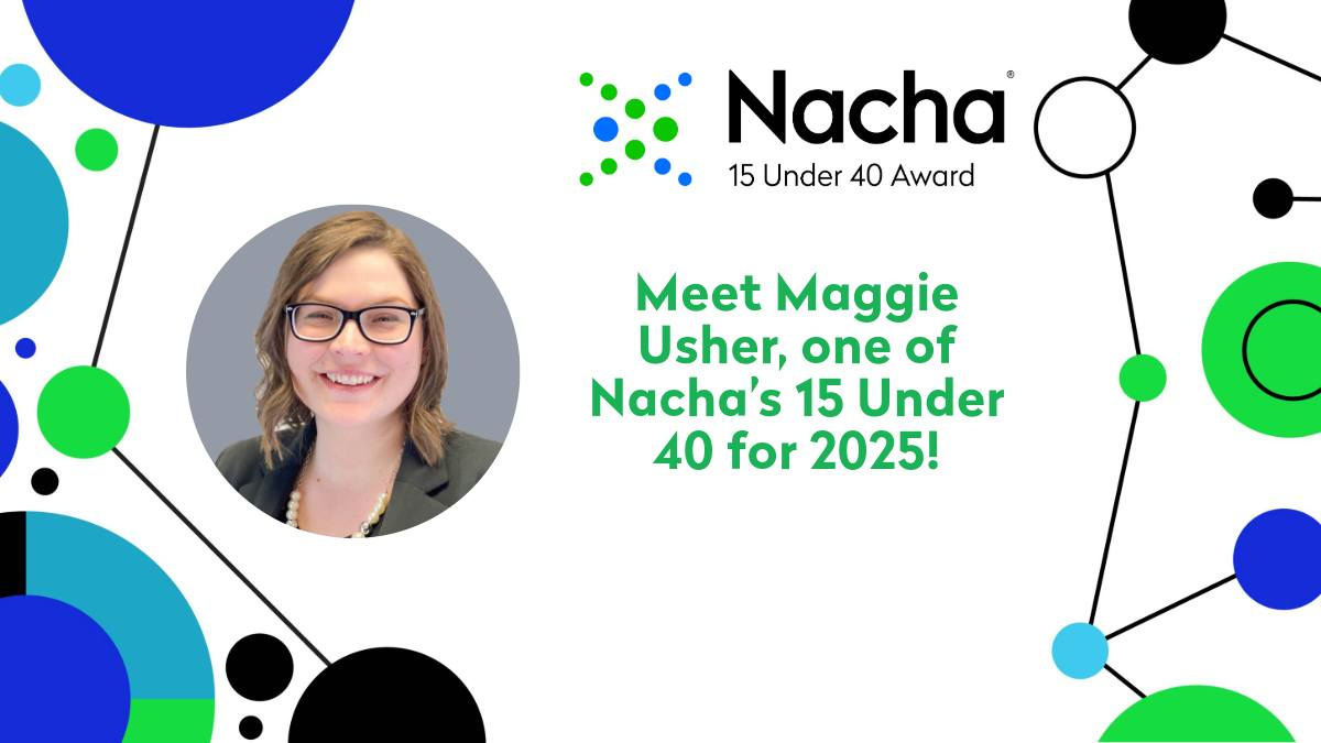 We are thrilled to share that Maggie Usher has been named one of Nacha’s 15 Under 40, a prestigious honor recognizing rising stars who are shaping the future of the payments industry. Maggie’s passion, leadership, and tireless commitment to empowering others have made a lasting impact from driving innovative payments strategies to championing education and collaboration across the industry.